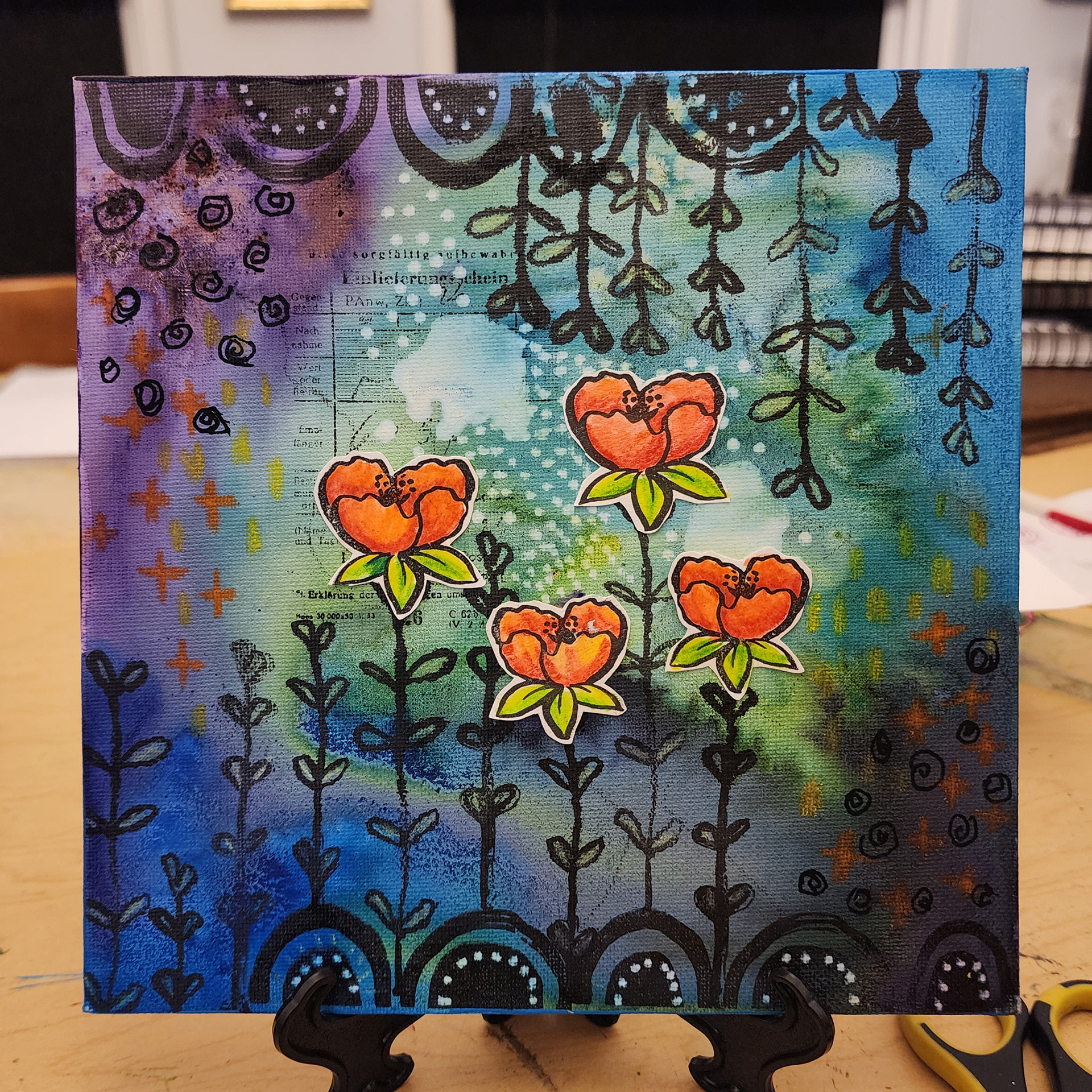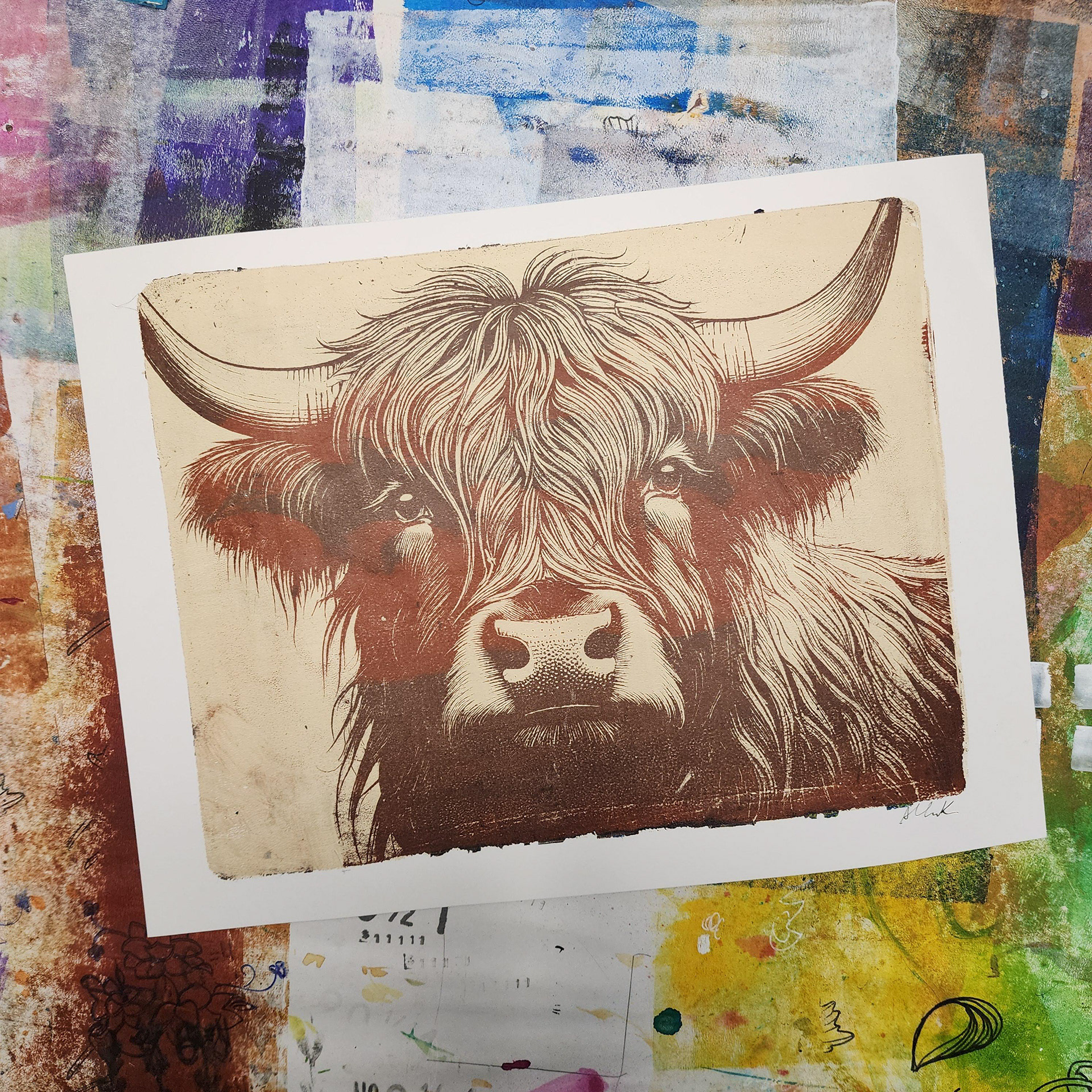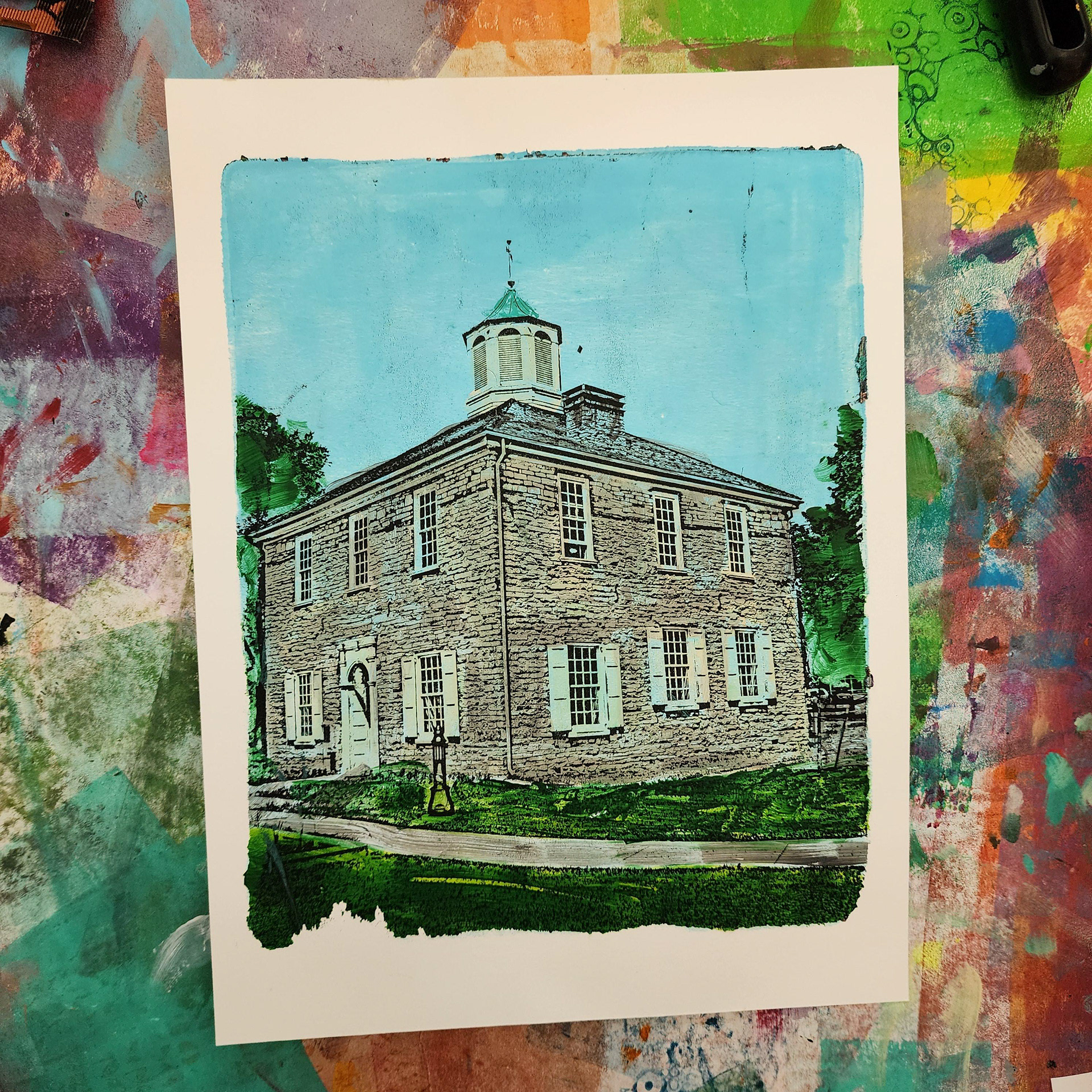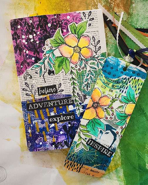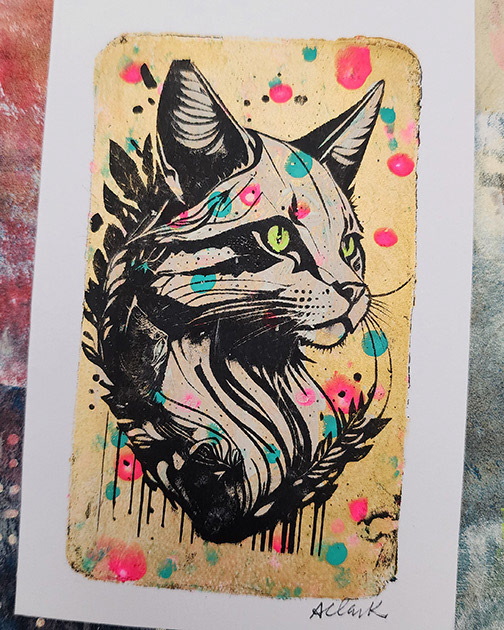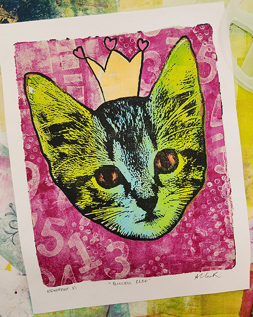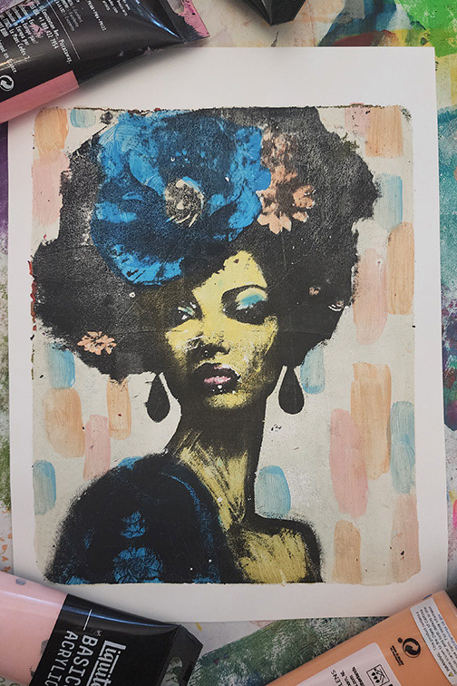 I've practiced various types of art my entire life. During the Pandemic I became particularly intrigued with messy colorful art journaling and mixed media in general. I watched tons of Instagram reels and YouTube videos and also discovered gel printing. It's absolutely one of my favorite mediums and goes very well with my graphic design background.