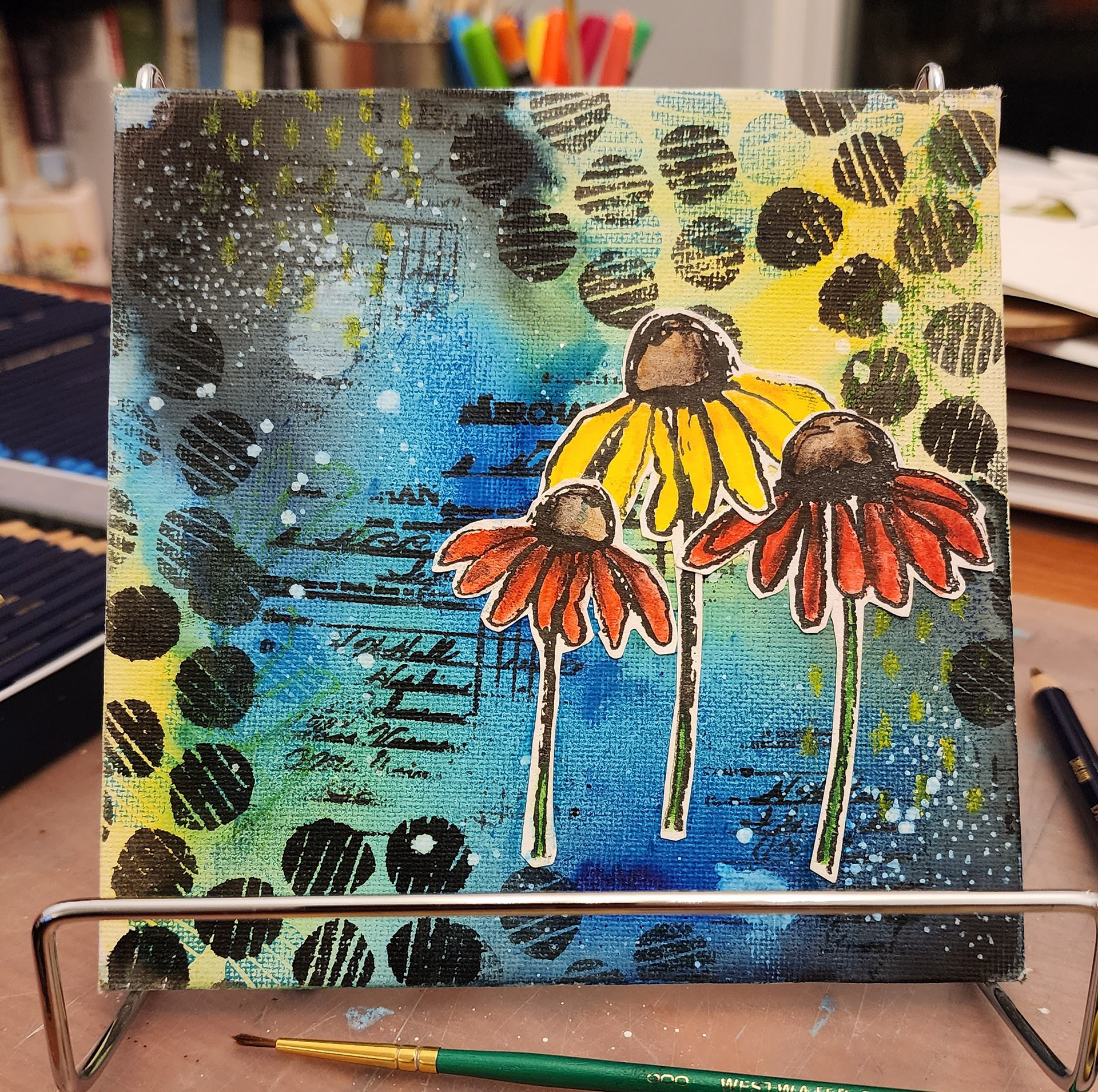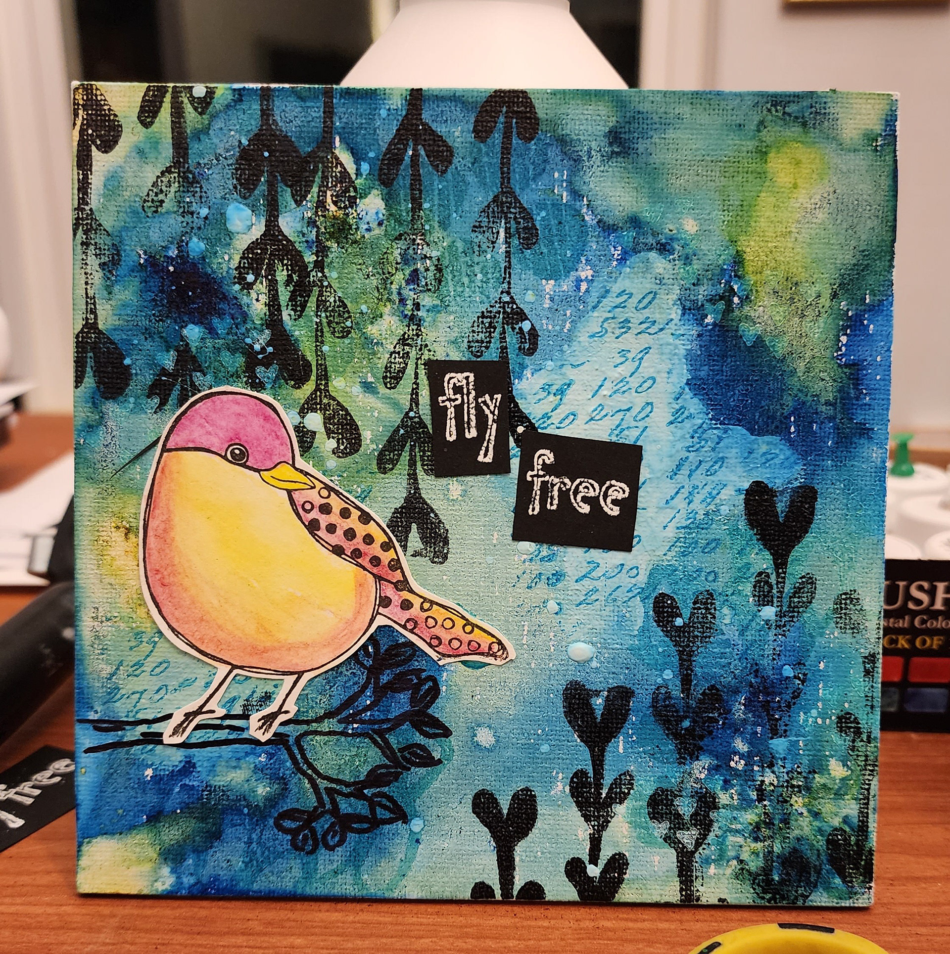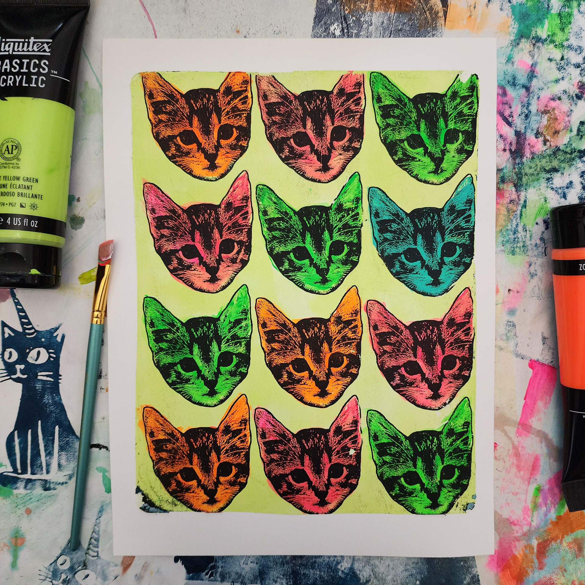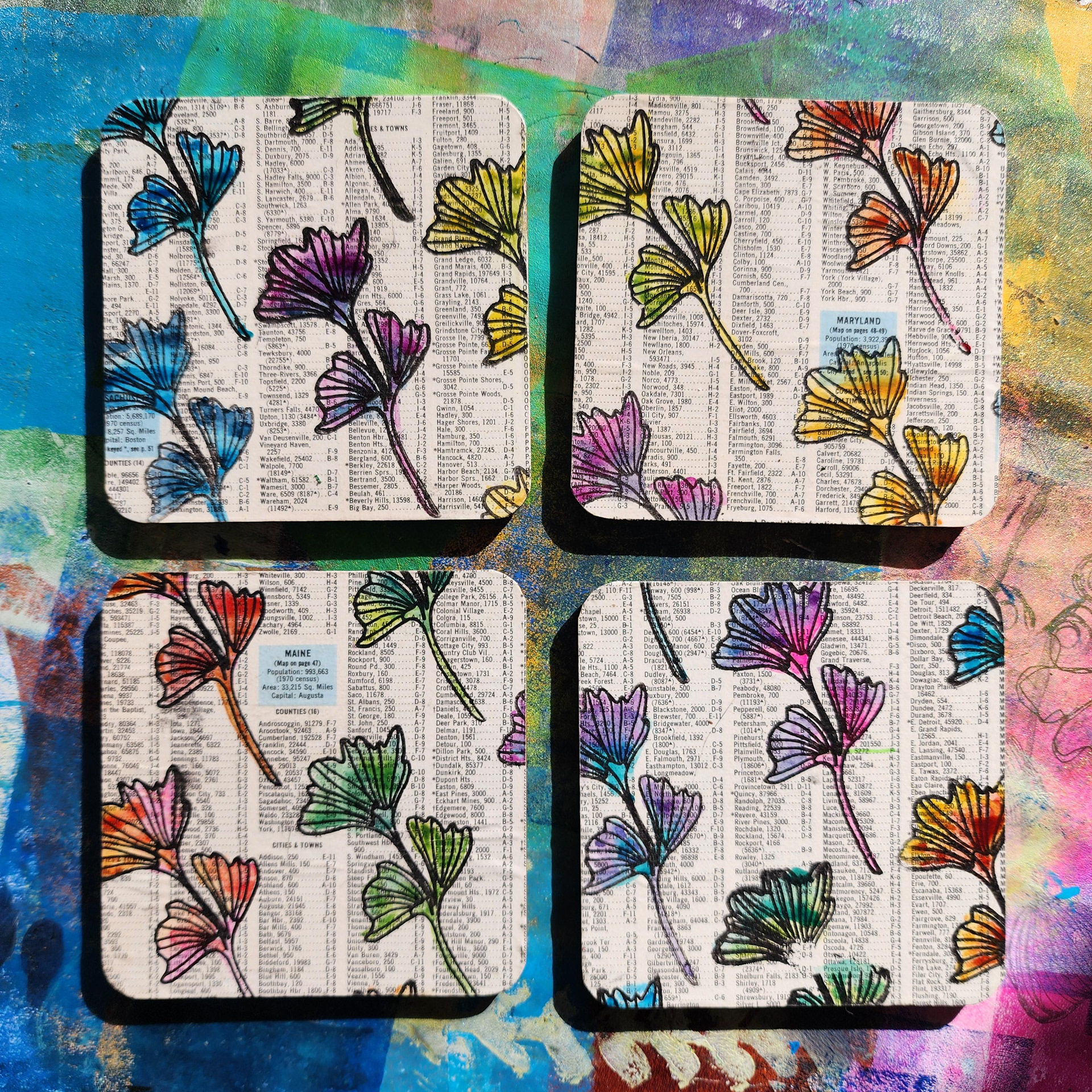 I've practiced various types of art my entire life. During the Pandemic I became particularly intrigued with messy colorful art journaling and mixed media in general. I watched tons of Instagram reels and YouTube videos and also discovered gel printing. It's absolutely one of my favorite mediums and goes very well with my graphic design background.